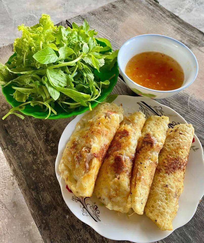 – Lớp vỏ giòn rụm, nhân đầy ắp tôm mực tươi rói, ăn kèm rau sống và nước chấm chua ngọt cực kỳ hấp dẫn.
